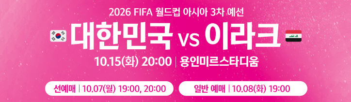 2026 월드컵 아시아 3차 예선, 대한민국과 이라크의 경기는 10월 15일 20시에 용인미르스타디움에서 열릴 예정입니다.